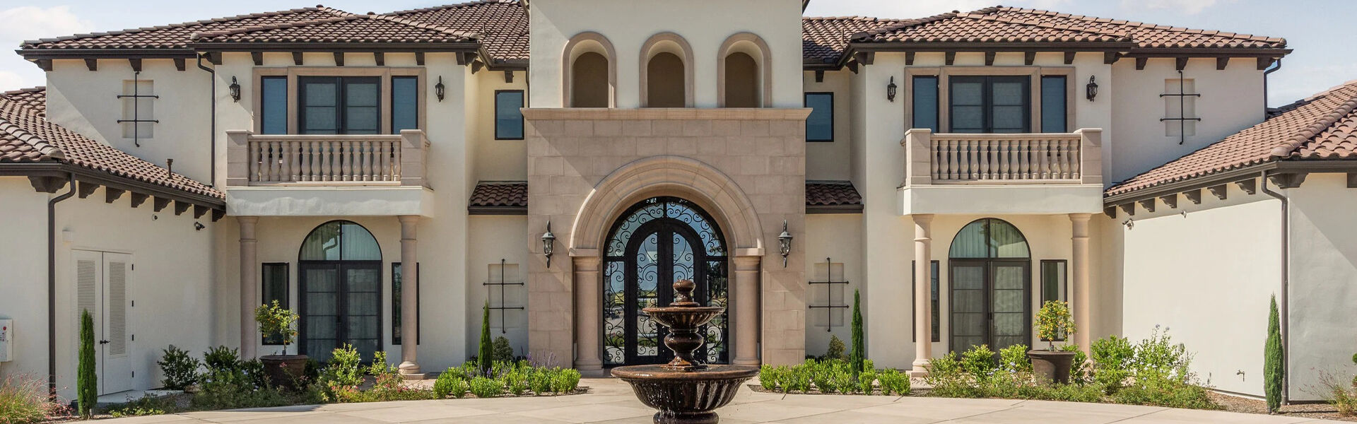 Alvarado-Modell Doppelflügliche Eingangstür aus Eisen mit temperiertem Regenglas und dunkelbronzefarbenem Finish